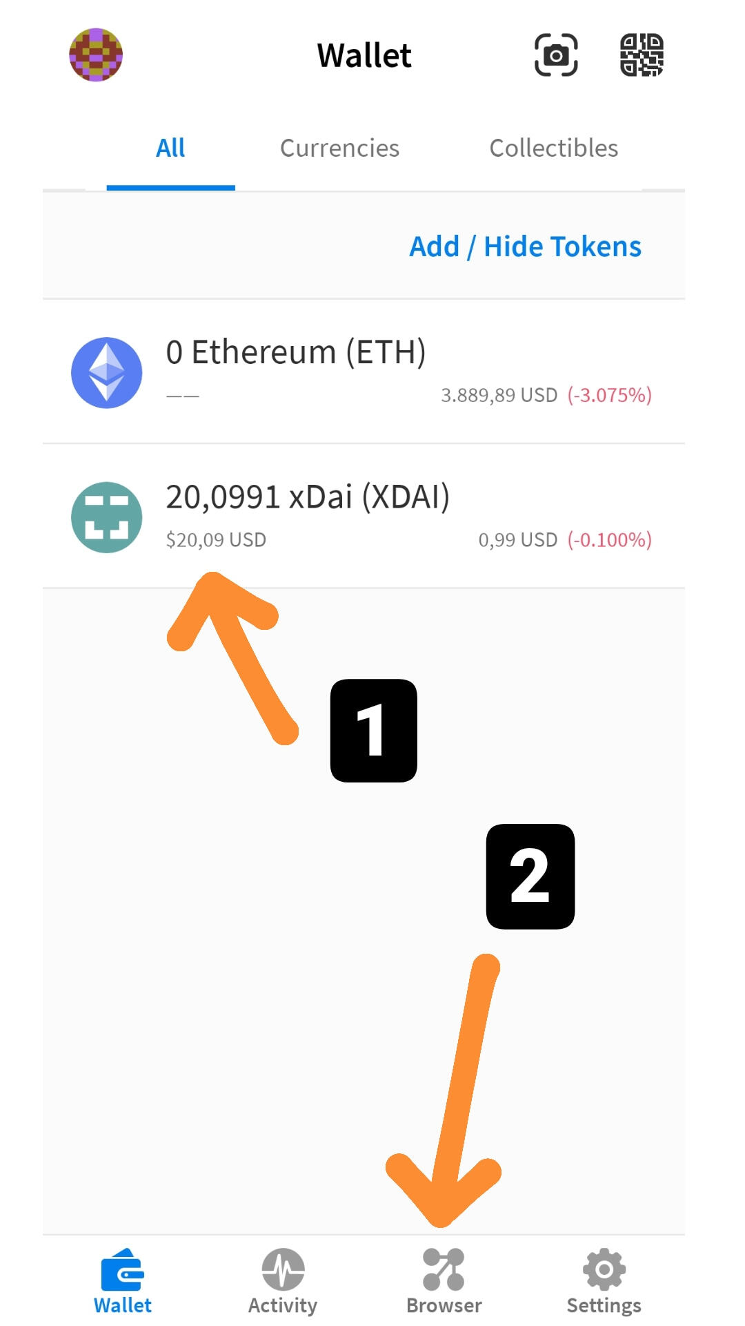 (AlphaWllet is our reccommended xDai Wallet on mobile)